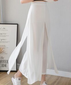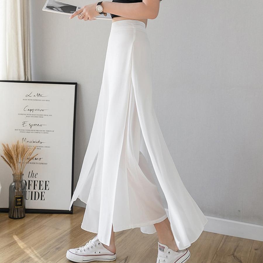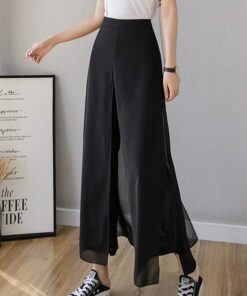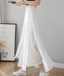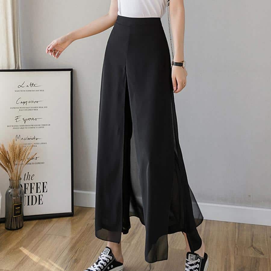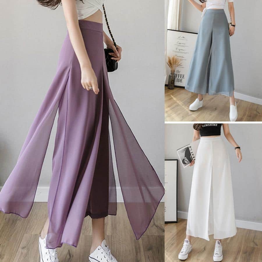 بنطلون واسع الساق من الشيفون والحرير الجليدي
