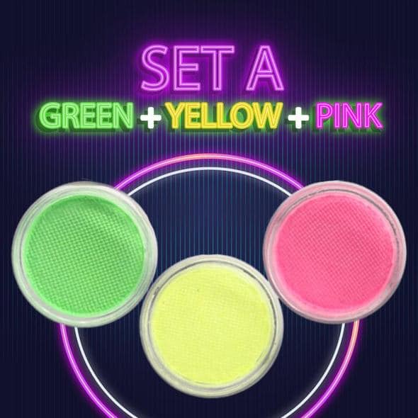 المجموعة أ (أصفر + وردي + أخضر)؛ المجموعة ب (أزرق + أرجواني + أخضر)