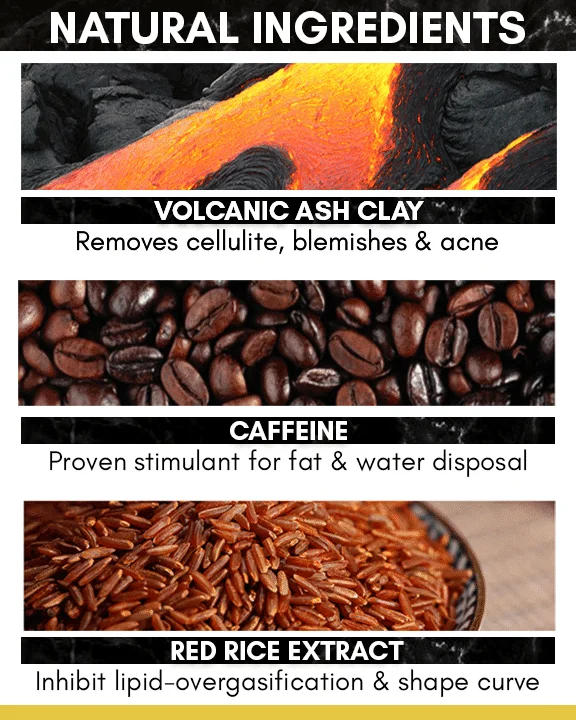 - المكونات: الطين البركاني، الكافيين، الجلسرين، زيت الزيتون